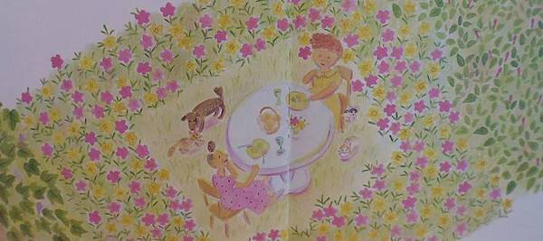 中午的時候,她們一起在松葉牡丹的中庭吃午餐